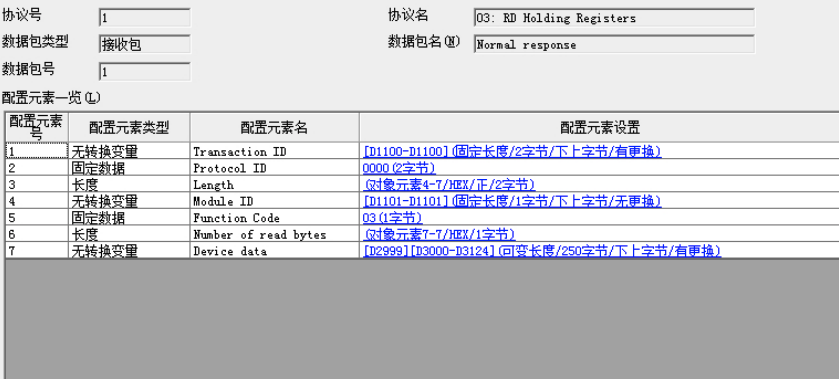【Device data】:读取后保存在QPLC的地址,寄存器地址不可与发送包、接收包、错误包中已经设置的寄存器地址重复